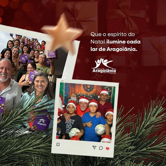Neste Natal, a Prefeitura de Aragoiânia deseja que cada lar seja iluminado pela fé, pela esperança e pelo amor ao próximo. Que este tempo especial renove os corações, fortaleça as famílias e nos inspire a seguir construindo juntos uma cidade cada vez mais justa, humana e acolhedora.